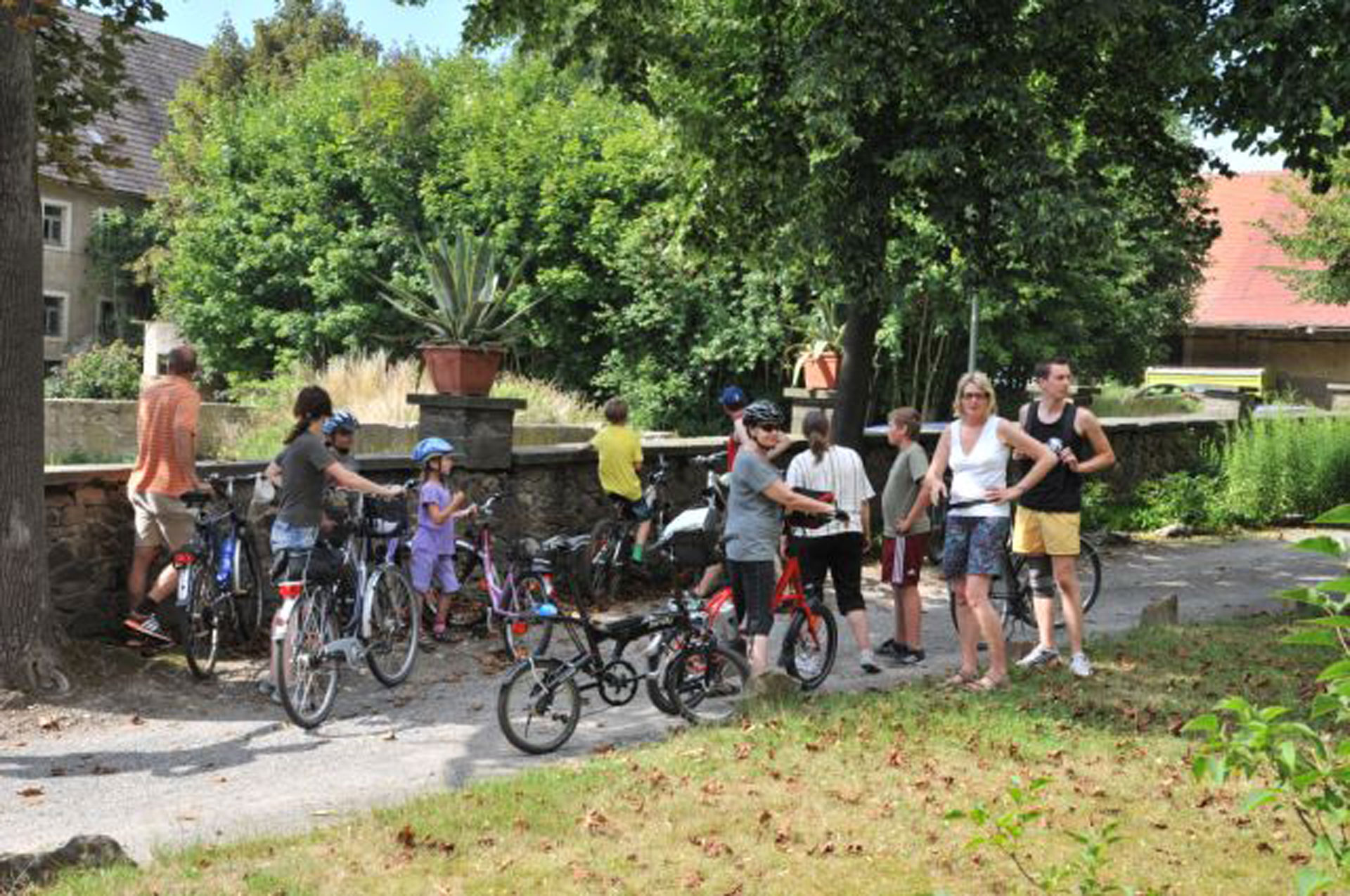 Auch die nächste S-Bahn-Station Arnsdorf ist keine 5 km über einen ebenen, gut ausgebauten Radweg zu erreichen. Von dort aus fahren mindestens halbstündlich S-Bahnen nach Dresden und bis Mitternacht wieder zurück. Im Zug können Fahrräder mitgenommen werden und so gelangt man auch bequem zum bekannten Elbradweg. Mit dem Fahrrad sind auch größere Supermärkte in nur ca. 4 km Entfernung sehr gut erreichbar. Übrigens bieten wir im Rahmen der Animation regelmäßig geführte Radwanderungen zu interessanten Zielen an.